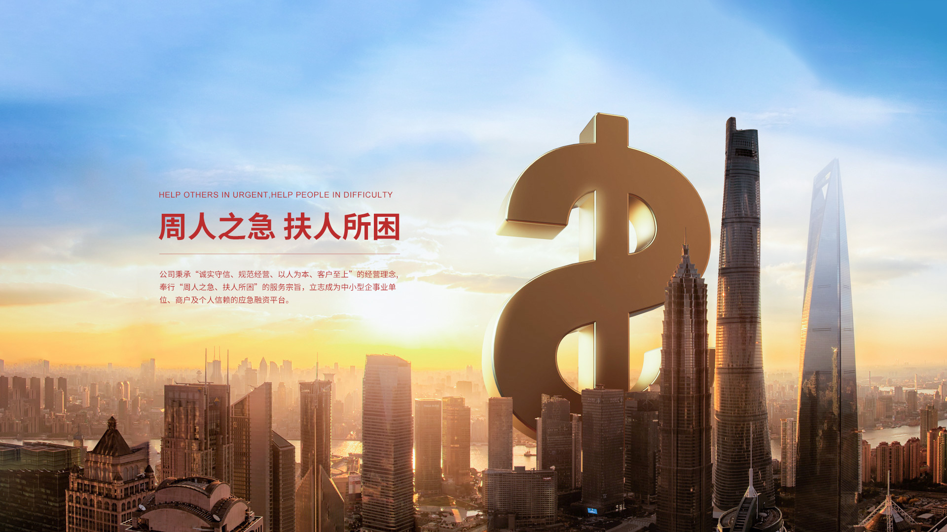 公司秉承“誠實(shí)守信、規(guī)范經(jīng)營、以人為本、客戶至上”的經(jīng)營理念,奉行“周人之急、扶人所困”的服務(wù)宗旨,立志成為中小型企事業(yè)單位、商戶及個(gè)人信賴的應(yīng)急融資平臺。